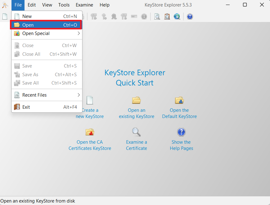 - Abra o KeyStore Explorer.