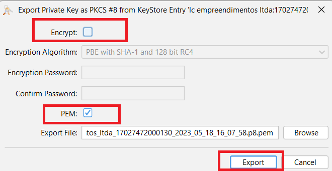 3. Exportar a Chave Privada (formato .PEM)